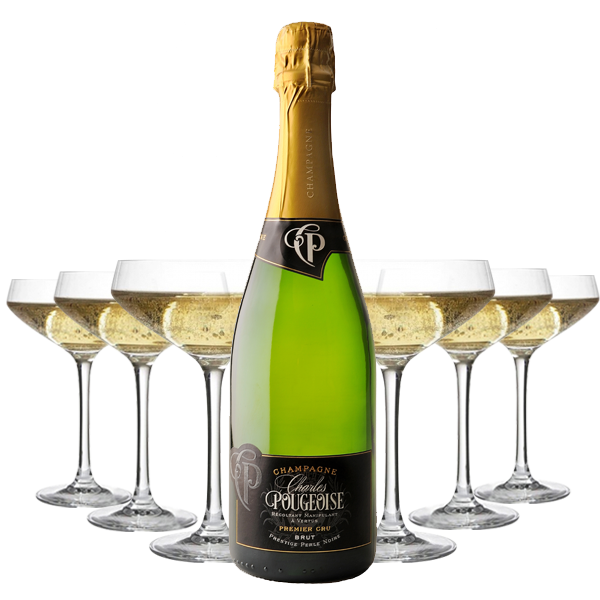CHAMPAGNE POUGEOISE PRESTIGE PERLE NOIRE + 6 COPPE CHAMPAGNE CRISTALLERIA ITALIANA IN OMAGGIO