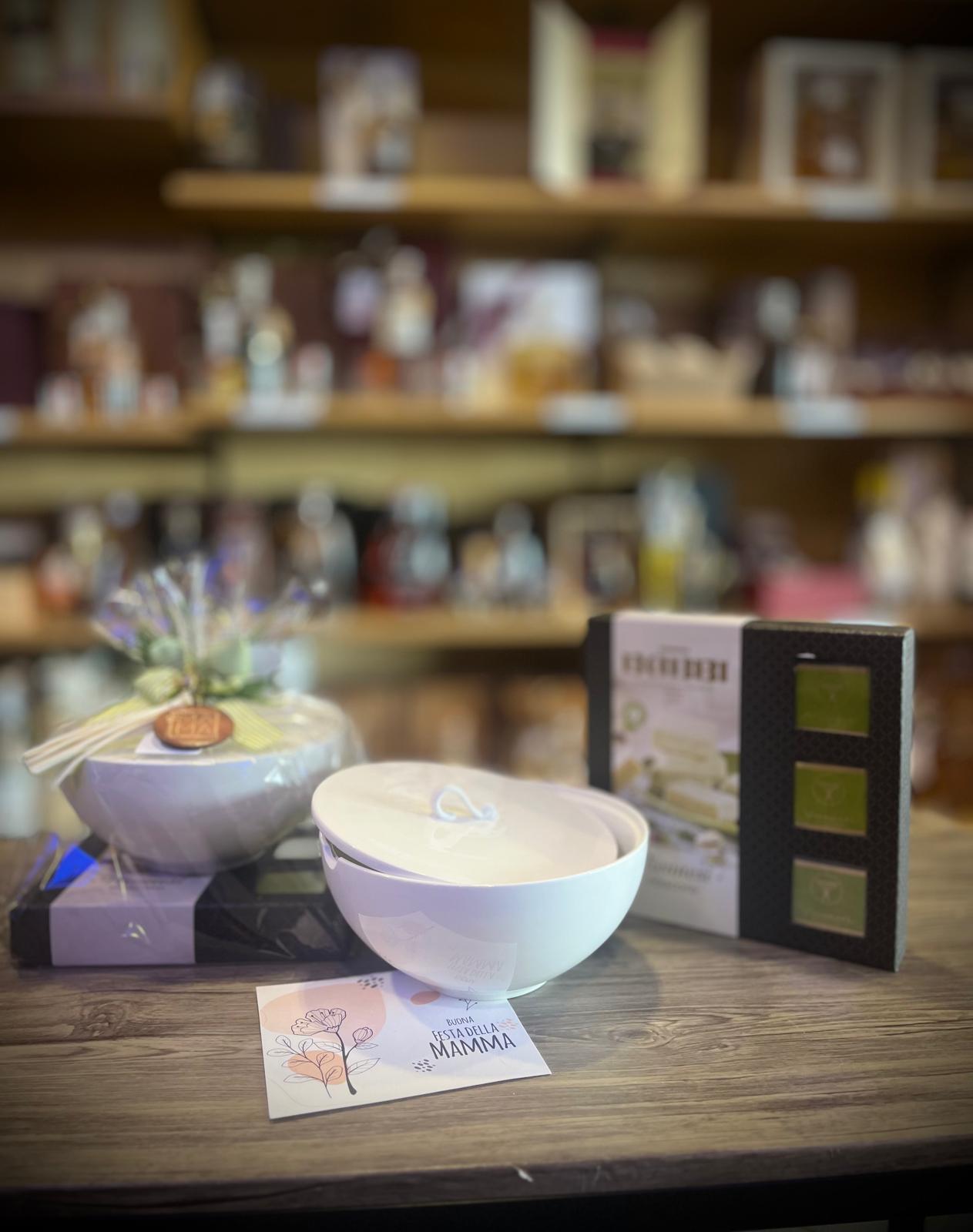 Una scatola di BABBI wafer al pistacchio ricoperti di cioccolato bianco + biscottiera "TraMe Arte" in porcellana