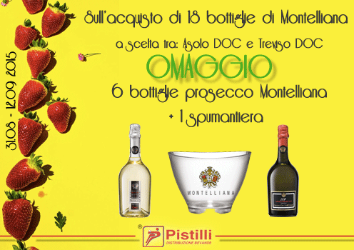 Sull’acquisto di 18 bottiglie di Montelliana a scelta tra Asolo DOC e Treviso DOC 6 bottiglie prosecco Montelliana + 1 spumantiera in OMAGGIO PER TE!
