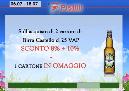 Sull’acquisto di 2 cartoni di Birra Castello cl 25 VAP SCONTO 8% + 10% + 1 CARTONE IN OMAGGIO!