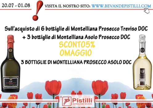 Sull’acquisto di 6 bottiglie di Montelliana Prosecco Treviso DOC + 3 bottiglie di Montelliana Asolo Prosecco DOC SCONTO5% + OMAGGIO 3 BOTTIGLIE DI MONTELLIANA PROSECCO ASOLO DOC!