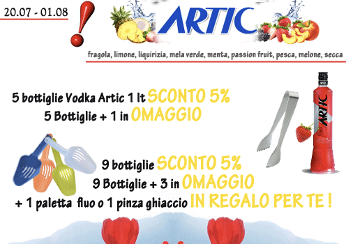 5 bottiglie Vodka Artic 1 lt SCONTO 5% 5 Bottiglie + 1 in OMAGGIO; 9 bottiglie SCONTO 5%