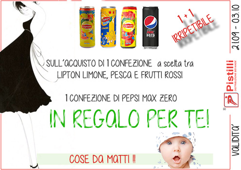 SULL’ACQUISTO DI 1 CONFEZIONE a scelta tra LIPTON LIMONE, PESCA E FRUTTI ROSSI 1 CONFEZIONE DI PEPSI MAX ZERO in REGALO PER TE!
