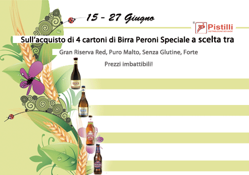 Prezzi speciali sull’acquisto di 4 cartoni di Birra Peroni Speciale a scelta tra Gran Riserva Red, Puro Malto, Senza Glutine, Forte!
