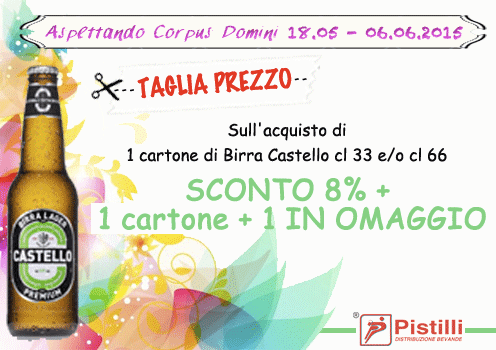 Sull’acquisto di 1 cartone di Birra Castello cl 33 e/o cl 66 SCONTO 8% + 1 cartone + 1 IN OMAGGIO!